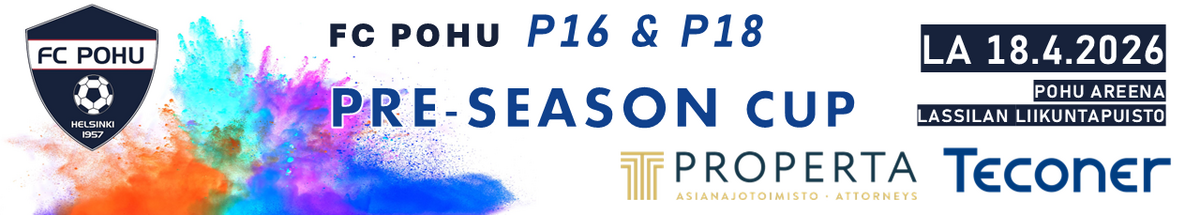 FC POHU Pre-Season Cup on puolipäiväinen turnaus 2018 ja 2016 syntyneille pojille. Turnaus pelataan hyvissä olosuhteissa 2017 valmistuneella tekonurmella Lassilassa. Turnauksen järjestää FC POHU P14 (pojat 2012). Lämpimästi tervetuloa vieraaksemme!